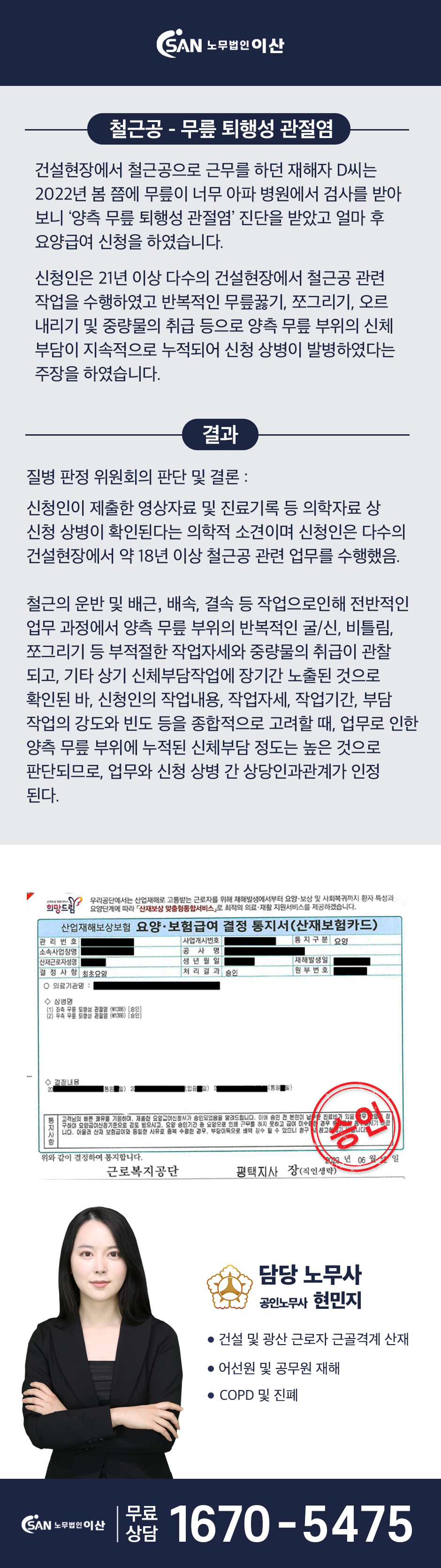 일용직 철근공 - 무릎 퇴행성 관절염 산재 승인!