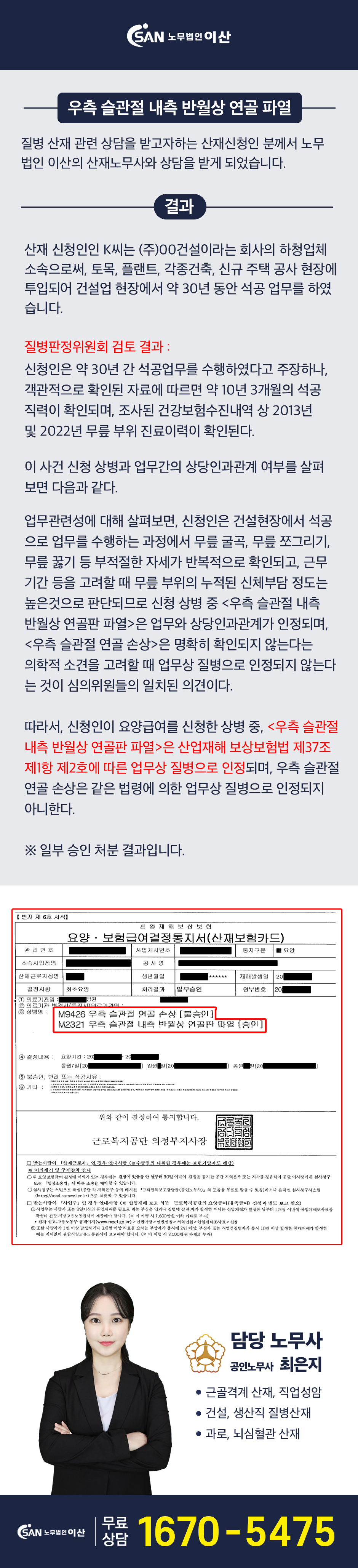 건설현장 근로자 <우측 슬관절 내측 반월상 연골판 파열> 무릎 산재 (일부 승인)