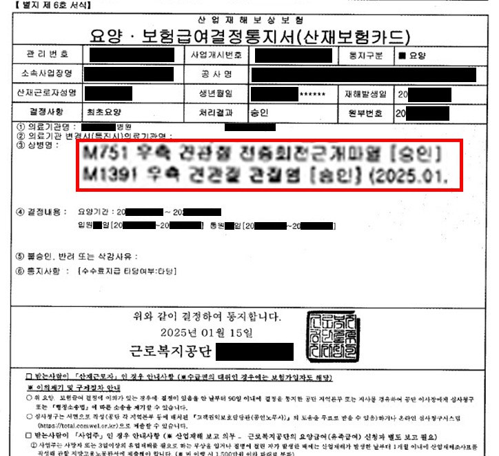 이번 사례는 두 가지 중요한 점을 시사합니다. 첫째, 특정 직업에 오래 종사하셨다면, 그 업무의 구체적인 동작 하나하나가 질병의 원인을 증명하는 소중한 증거가 될 수 있다는 것입니다. 둘째, 진단명의 '심각도' (가령, 부분파열이 아닌 전층파열)는 질병이 장기간의 업무 부담으로 인해 발생했다는 사실을 뒷받침하는 강력한 의학적 근거가 될 수 있습니다.