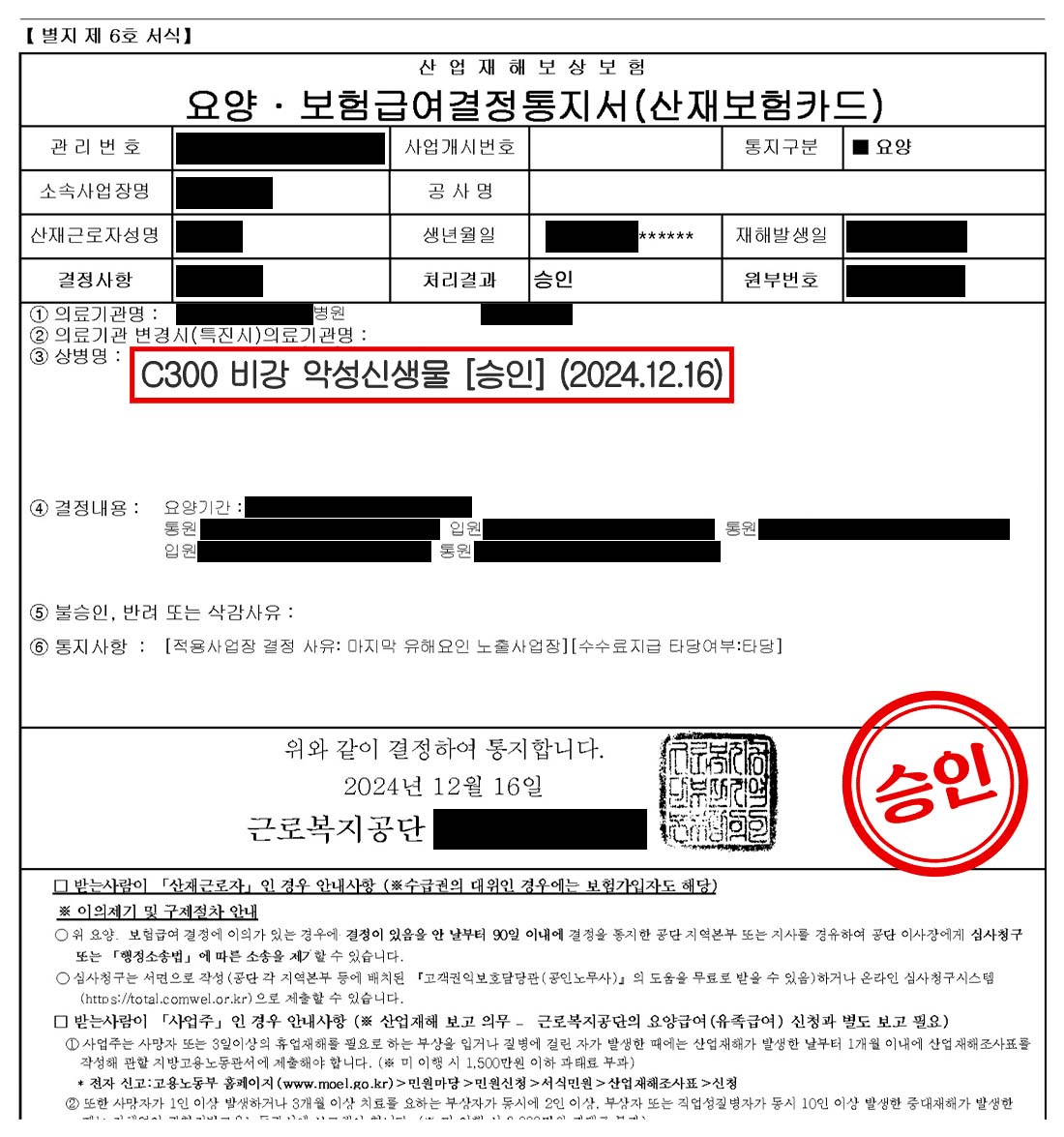 이는 의뢰인께서 오랜 기간 투병하시며 겪으셨던 고통과 노력이 정당하게 인정받은 결과이자, 저희 암산재연구소가 의뢰인과 함께 이룬 값진 성과였습니다. 이후 의뢰인께서는 요양급여 신청 승인을 받으셨으며, 이를 통해 치료에 전념하실 수 있게 되었습니다.