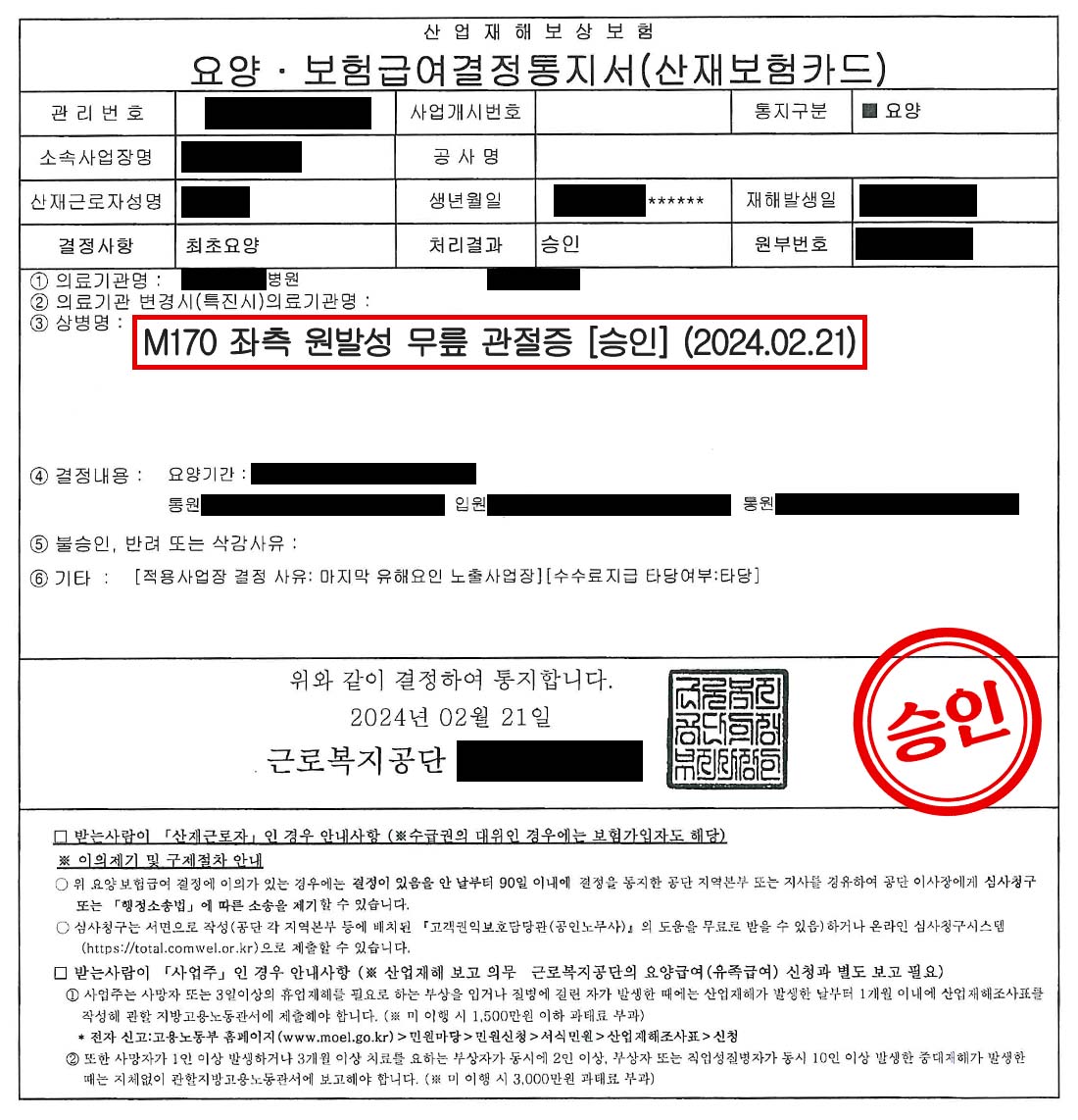 오늘 소개해 드릴 사례는, 8년 남짓한 경력으로 요양보호사와 조리원 일을 해오신 분이 '좌측 무릎 관절증'을 성공적으로 산재 인정받고, 자칫 불투명했던 수술 타당성 문제까지 해결하여 장해급여까지 받게 된 이야기입니다.
