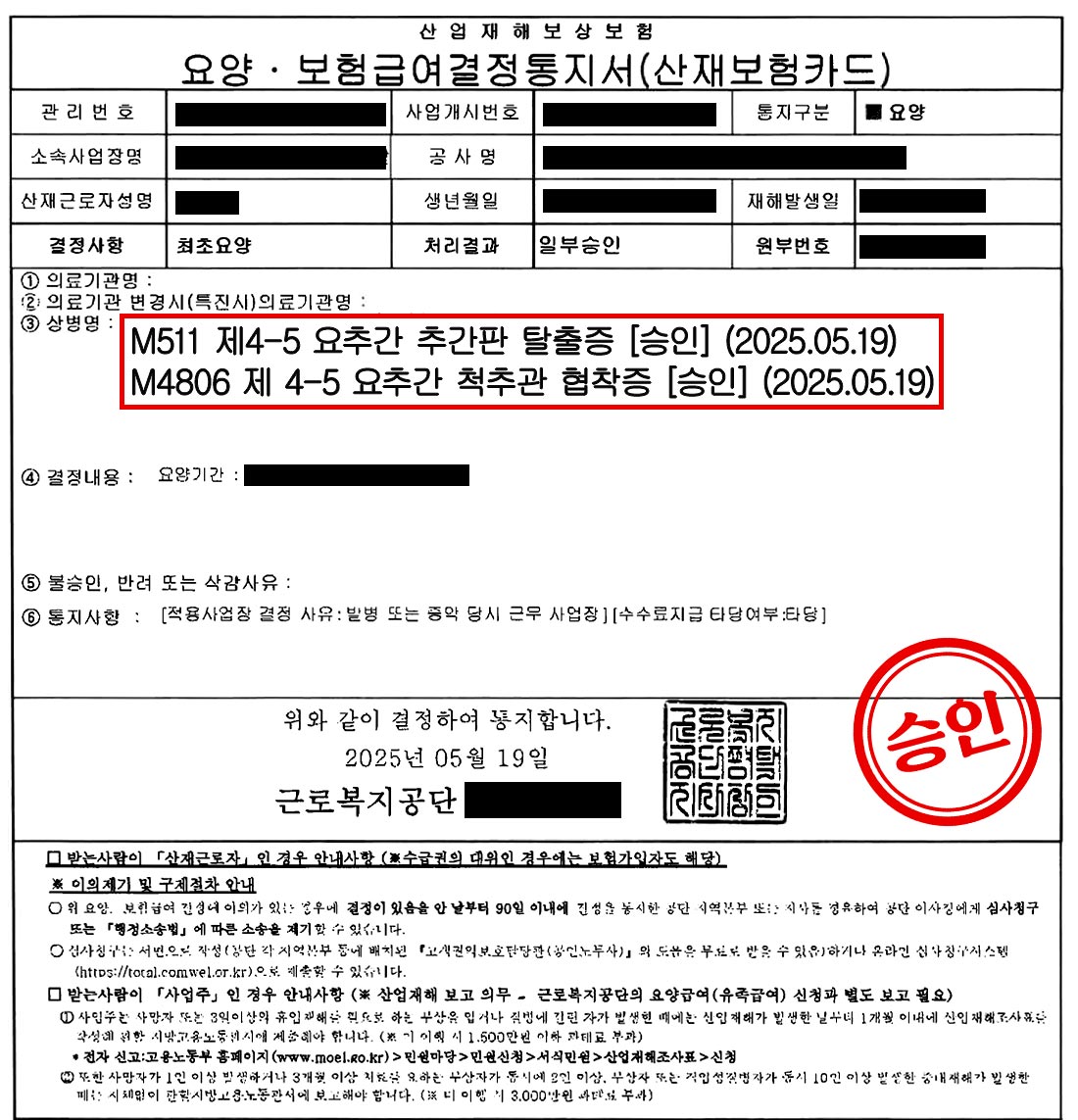 이번 사건의 핵심은 신청한 3개 부위의 질병 중, 수술까지 시행한 ‘제4-5요추간 추간판 탈출증 및 척추관 협착증’은 승인되었지만, 나머지 ‘제3-4요추간 추간판 탈출증’과 ‘제5요추-천추1번간 추간판 탈출증 및 협착증’은 인정되지 않았다는 점입니다.