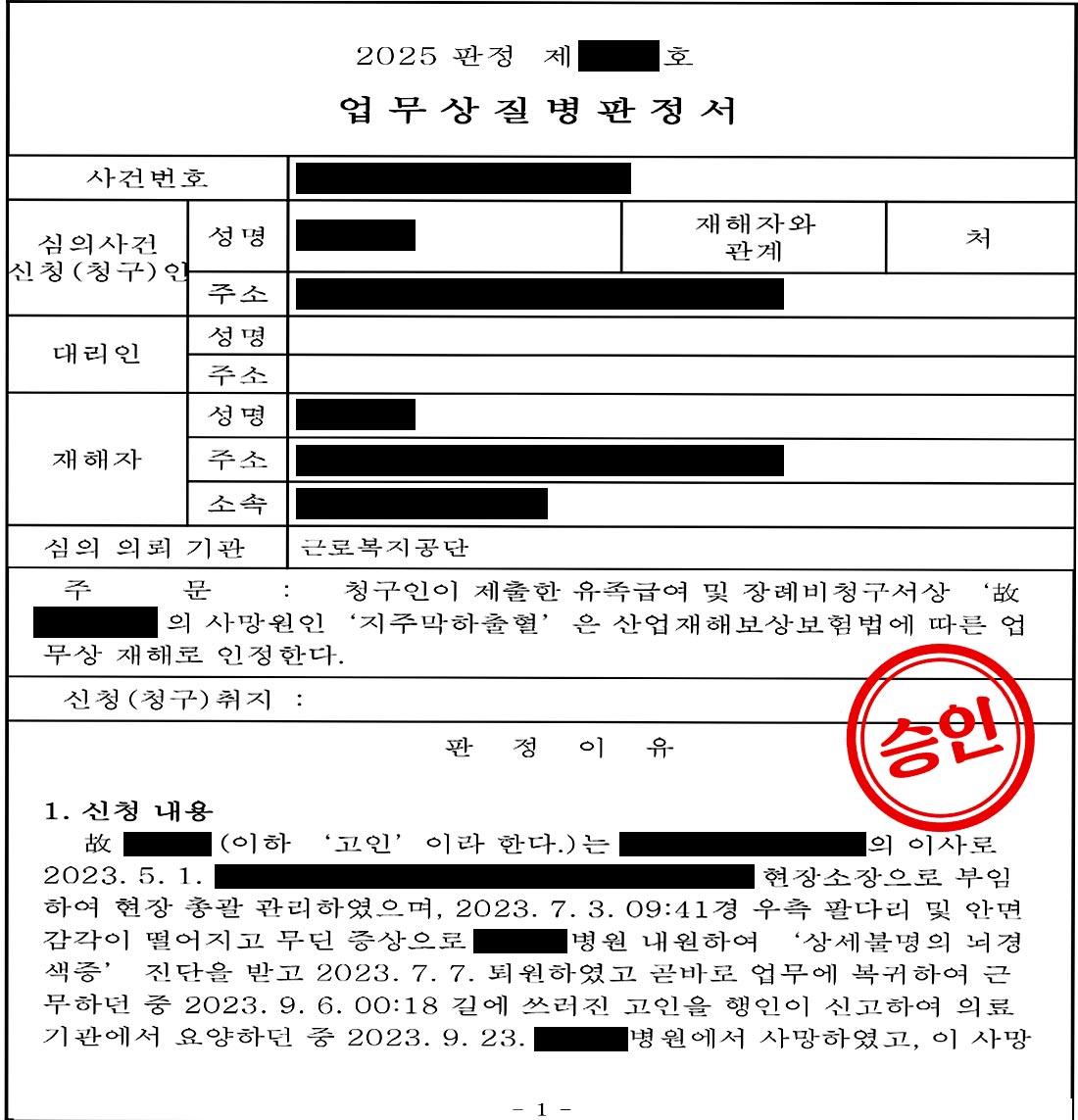 오늘 소개해 드릴 이야기는, 안타깝게 세상을 떠난 고인의 질환이 단순한 개인 질병이 아닌 업무와 깊이 연결되어 있었음을 끝까지 입증해 내고, 결국 남겨진 유족분들께 유족급여 승인이라는 결과로 이어진 가슴 아픈 사례입니다.