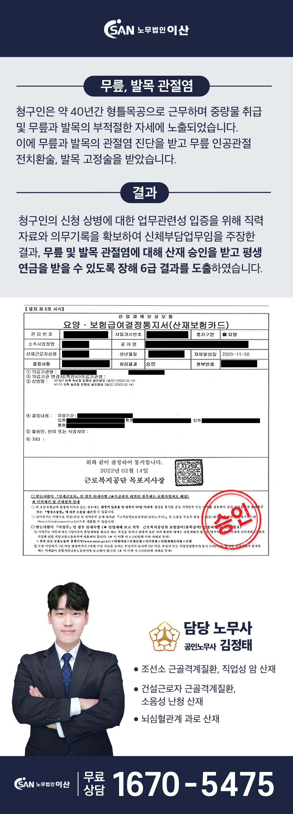 무릎, 발목 관절염 산재 승인