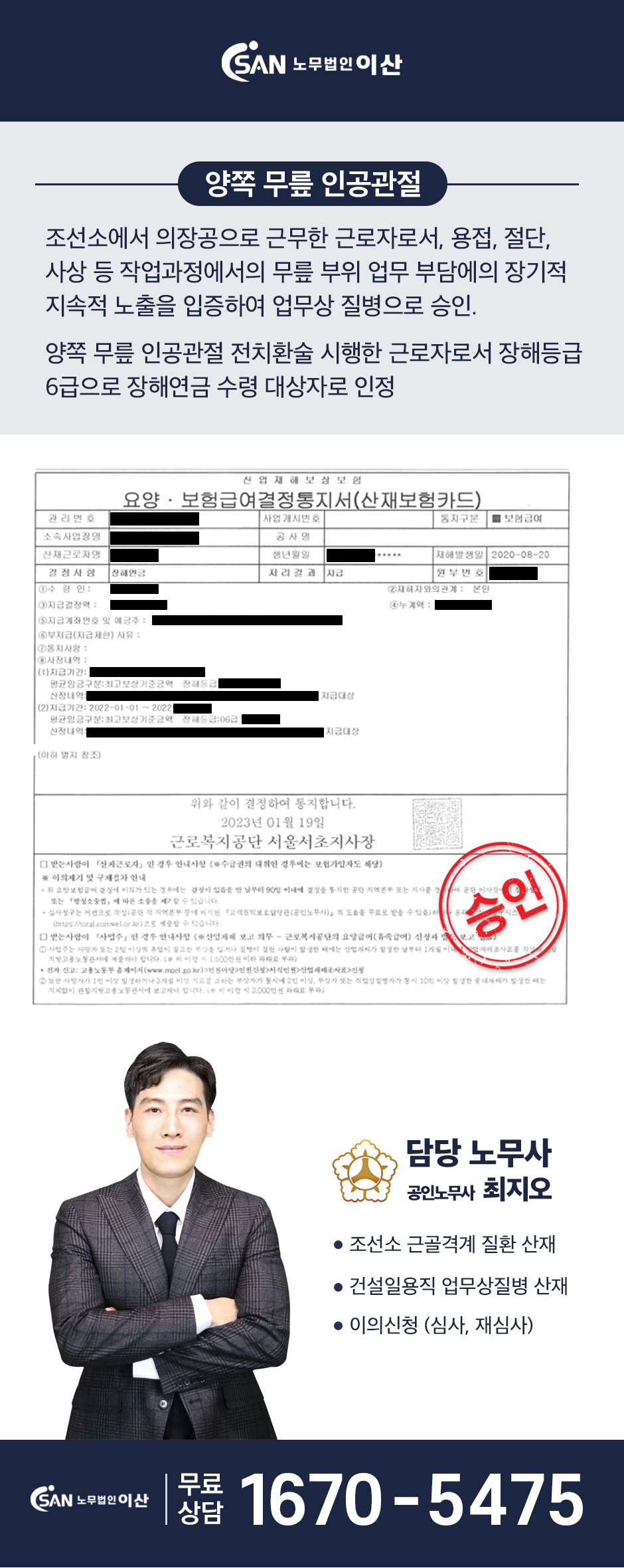 조선소 의장공 : 양쪽 무릎 인공관절 산재 승인 사례