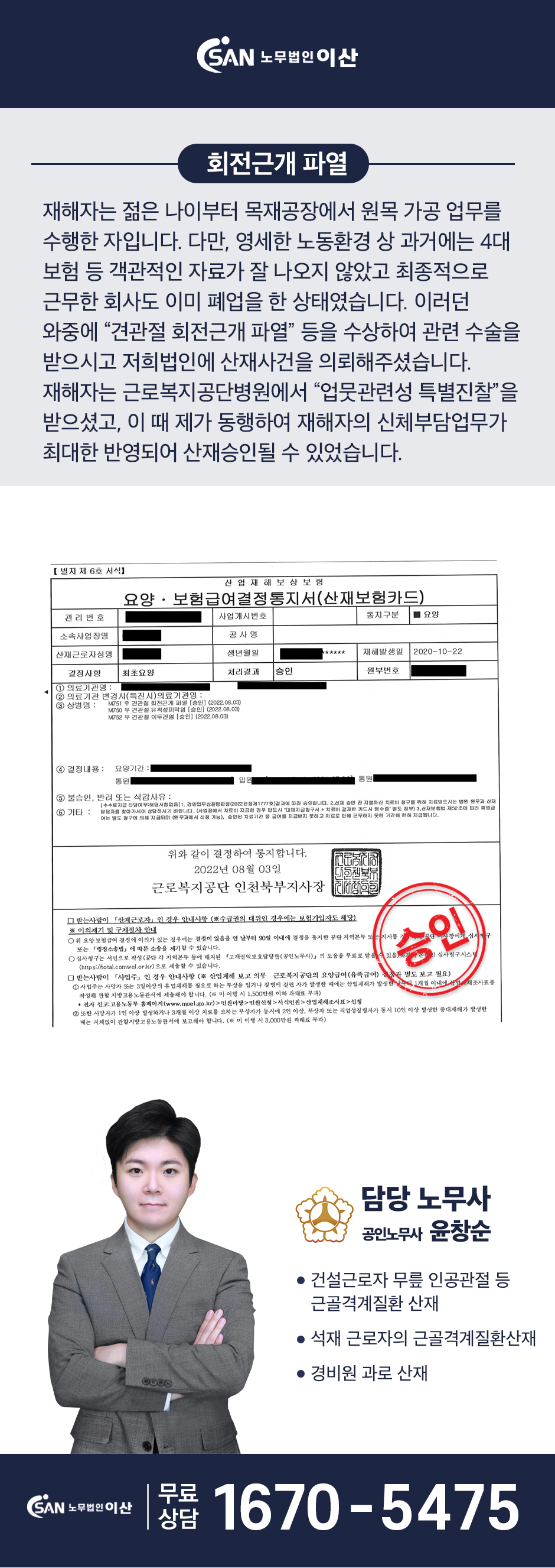 목재 가공 근로자 - 회전근개 파열 직업병 산재승인사례