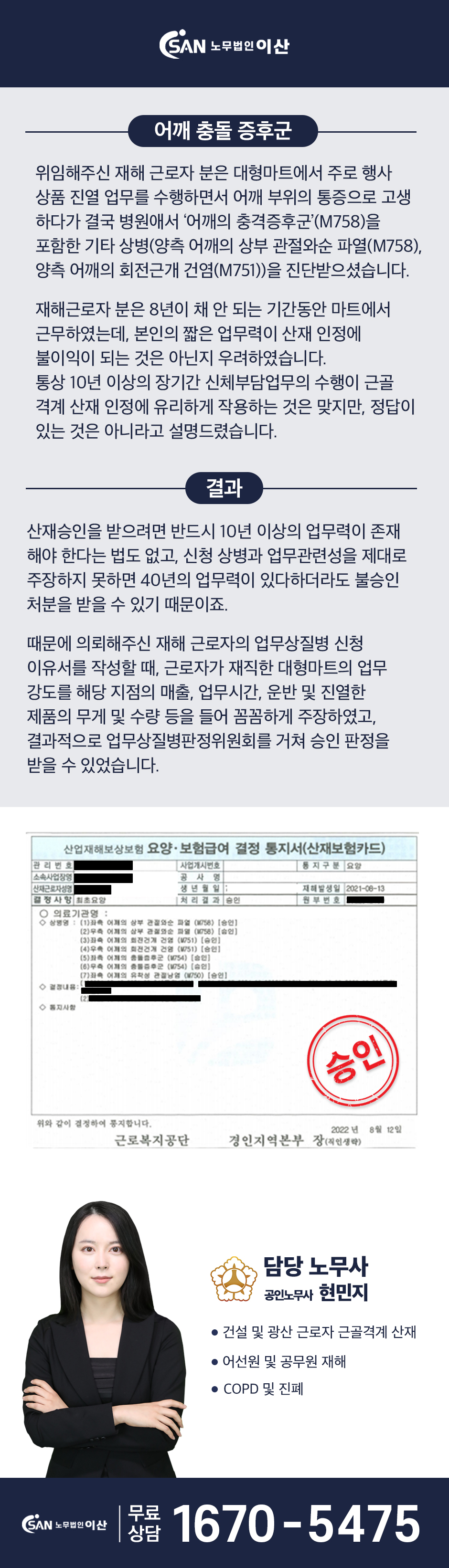 마트 근로자 - 어깨충돌증후군 산재 승인